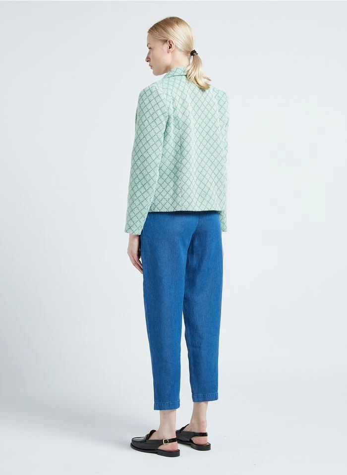 Ce modèle est présenté avec Veste de tailleur courte by KARL MARC JOHN, Pantalon droit à plis by SESSUN