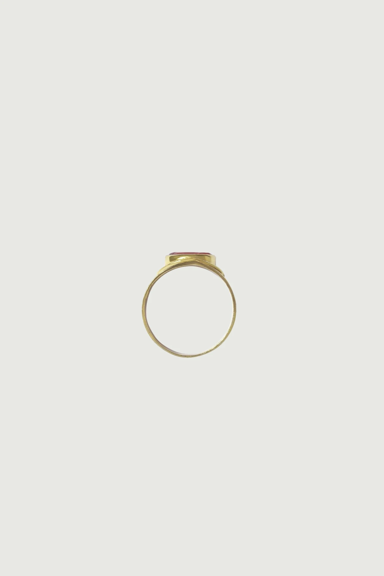 DRAGE est une bague chevalière en vermeil, ornée d’une pierre semi-précieuse (onyx vert foncé).