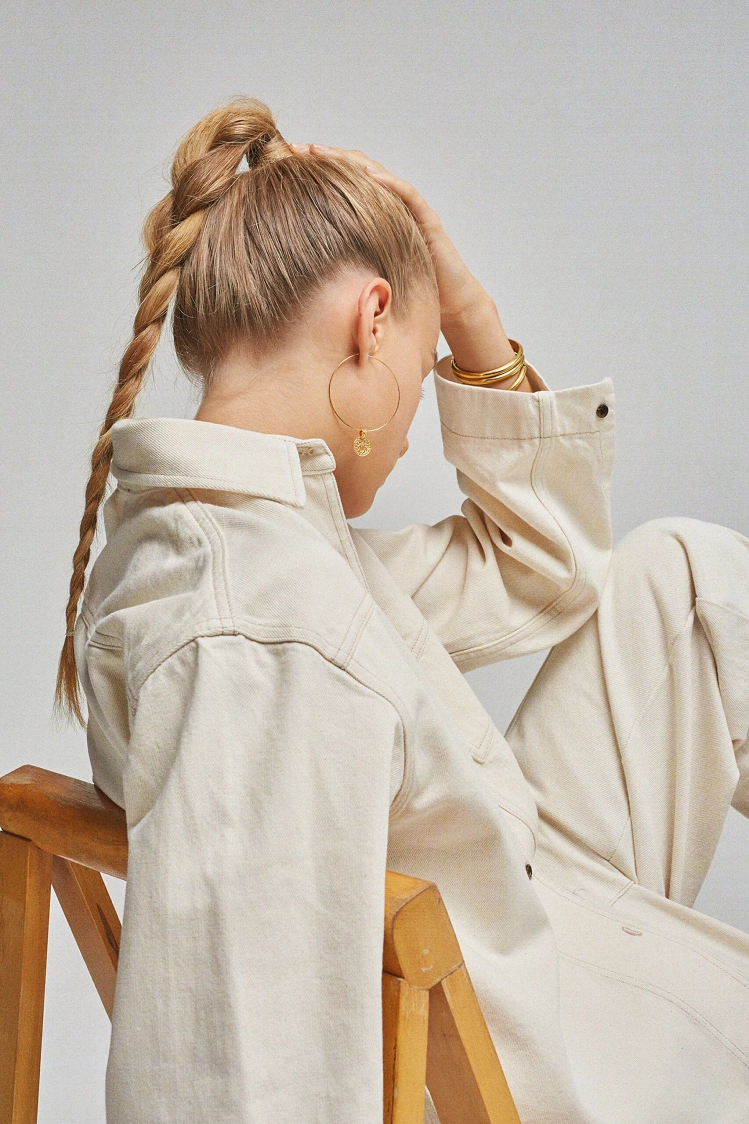 DOMITILLE1 est un pendentif rond en vermeil décoré d’un scarabée. Les motifs à l’intérieur de la médaille sont gravés par martelage.