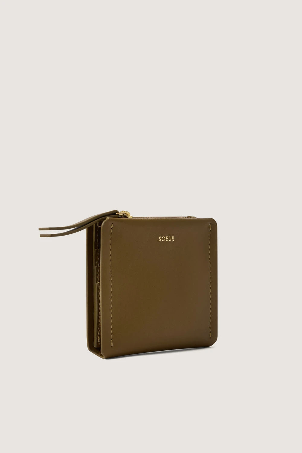 Portefeuille carré en cuir lisse bronze