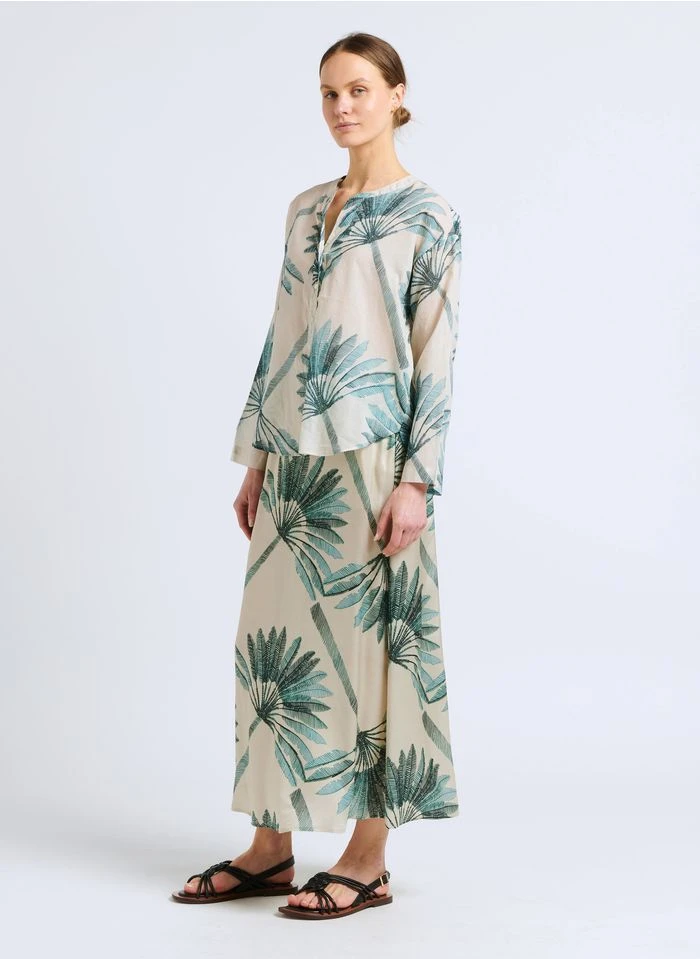 Ce modèle est présenté avec Chemise imprimée en coton by DIEGA, Jupe mi-longue imprimée by DIEGA