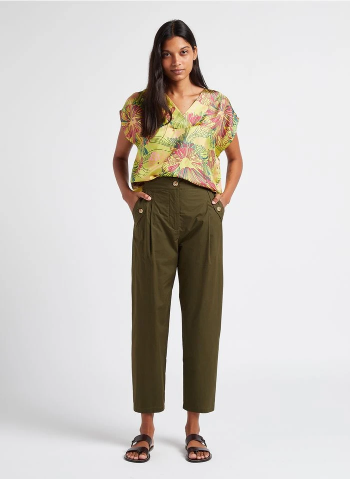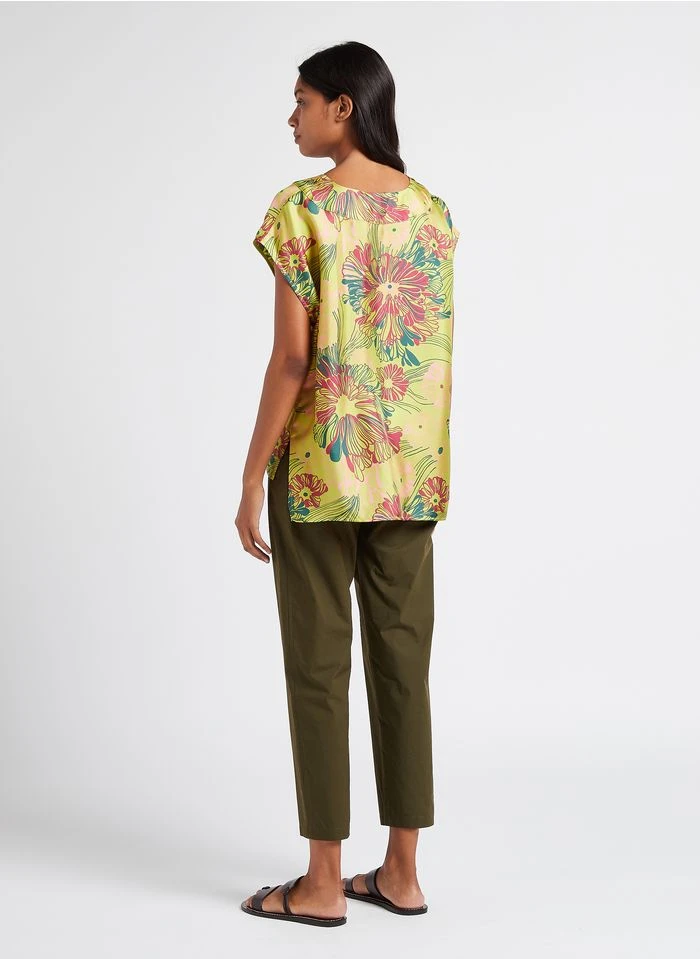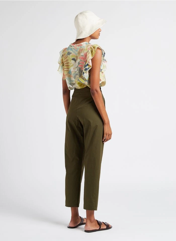 Ce modèle est présenté avec Robe longue col classique imprimée en soie by MOMONI, Chapeau en coton et li by SOEUR